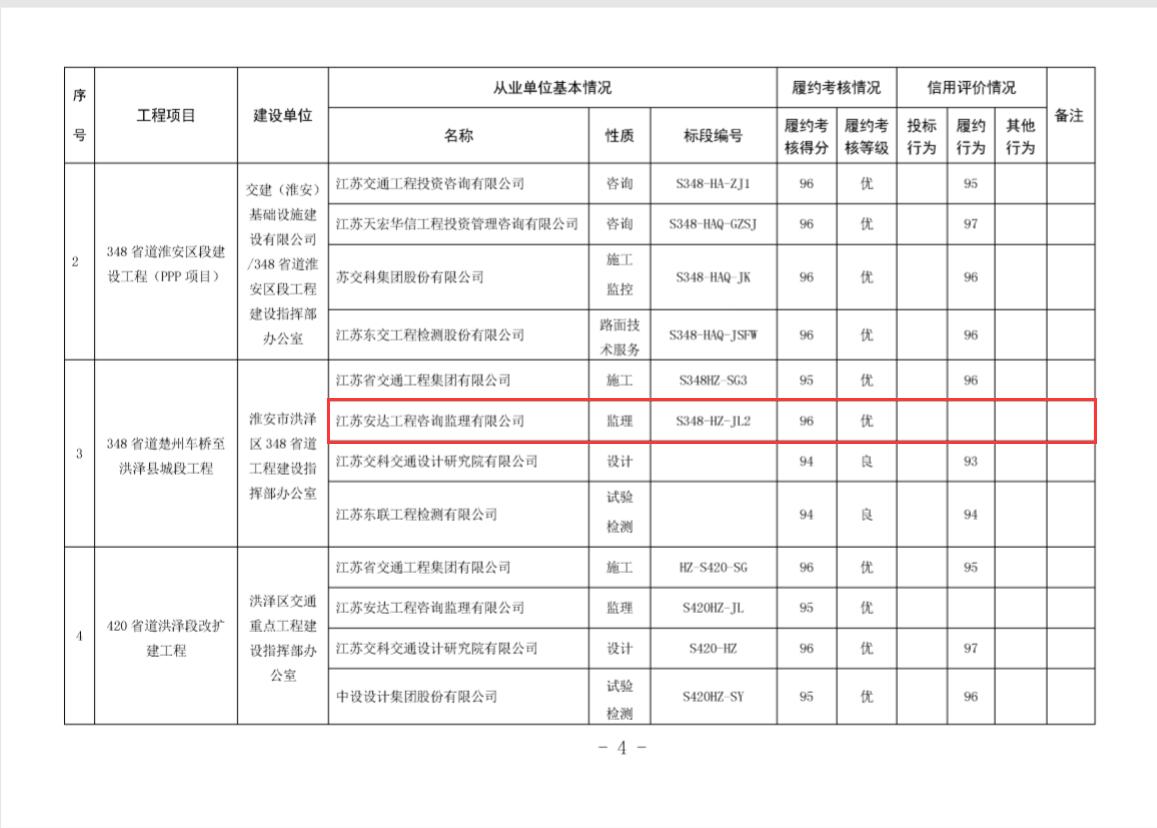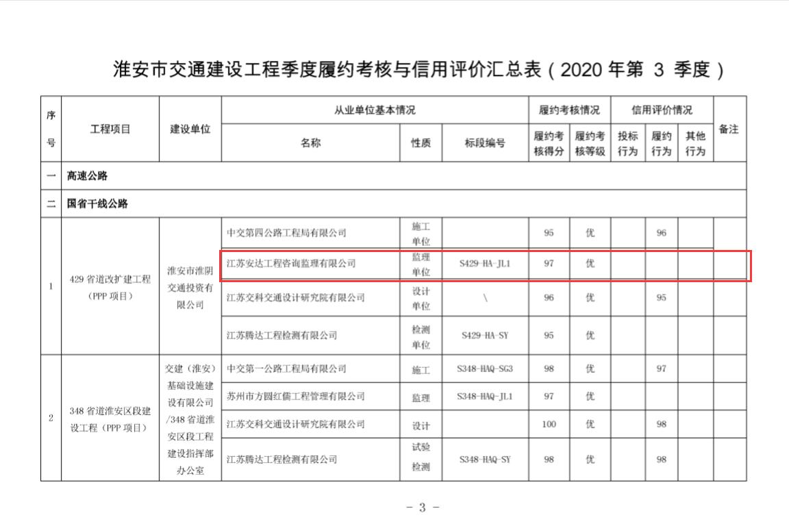 淮安市交通运输局文件淮交建【2020】4号,关于全市交通建设工程 2020年第三季度履约考核与信用评价结果的通报,我开云球赛_开云(中国)