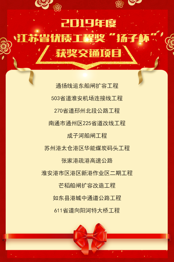 日前,江苏省住建厅公布了2019年度江苏省优质工程“扬子杯”表彰名单,我开云球赛_开云(中国) 监理的503省道淮安机场连接线工程再获殊荣,全省共11个公路水运项目获得表彰,此前已获得2019年度“江苏省交通优质工程”项目。