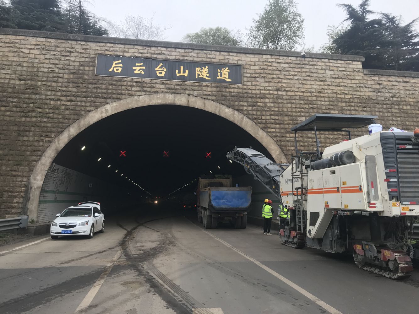 【公路】连云港后云台山隧道交通转换完成,左洞砼路面开始铣刨