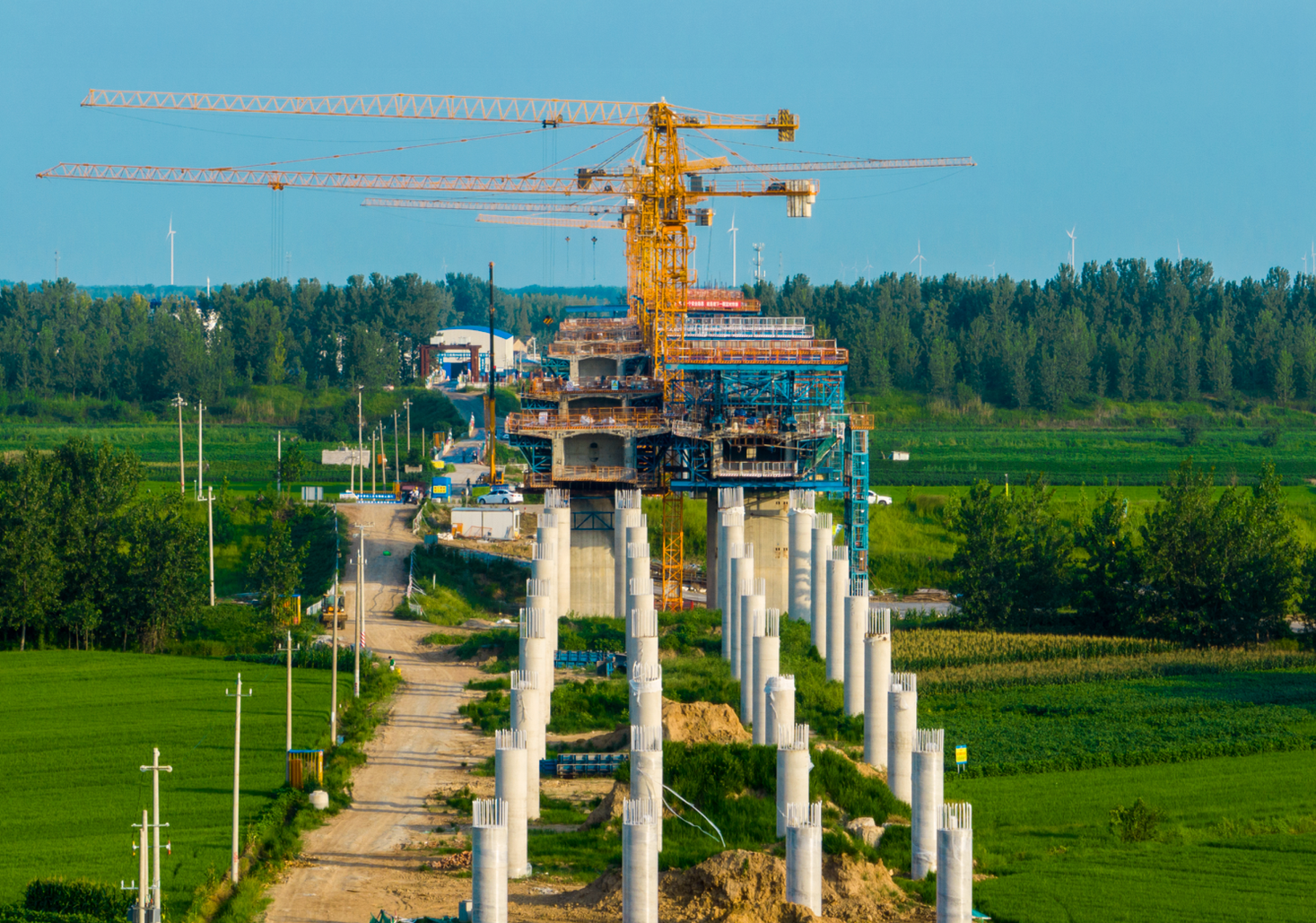 2022年9月22日,江苏省淮安市淮安区,江苏省重点交通工程264省道淮安区段跨淮河入海水道特大桥项目现场塔吊林立,一片热火朝天的建设场景。为确保特大桥早日完工,施工单位中交三航局抢抓晴好天气,通过交叉作业,密集施工等多工序同步推进全力推动重大交通工程加快建设。