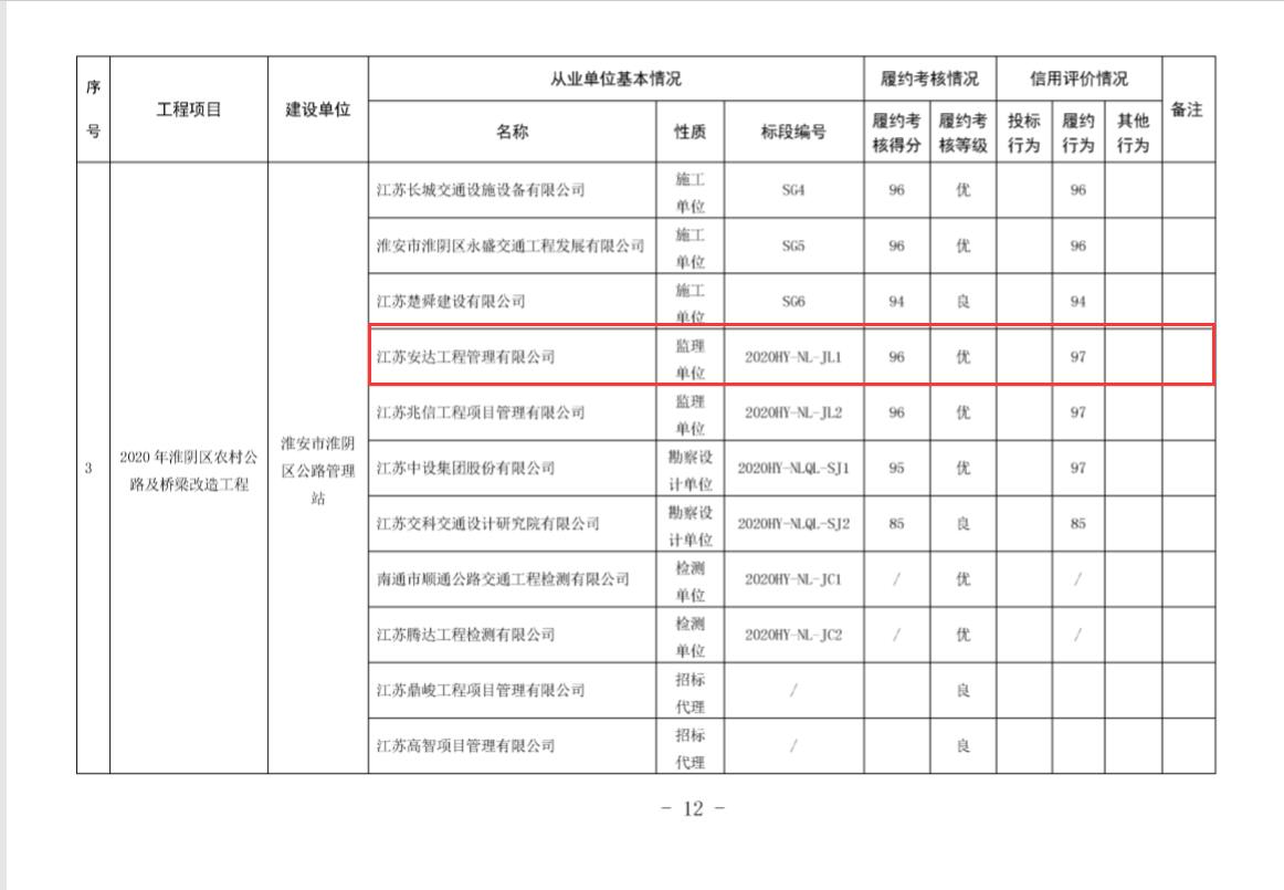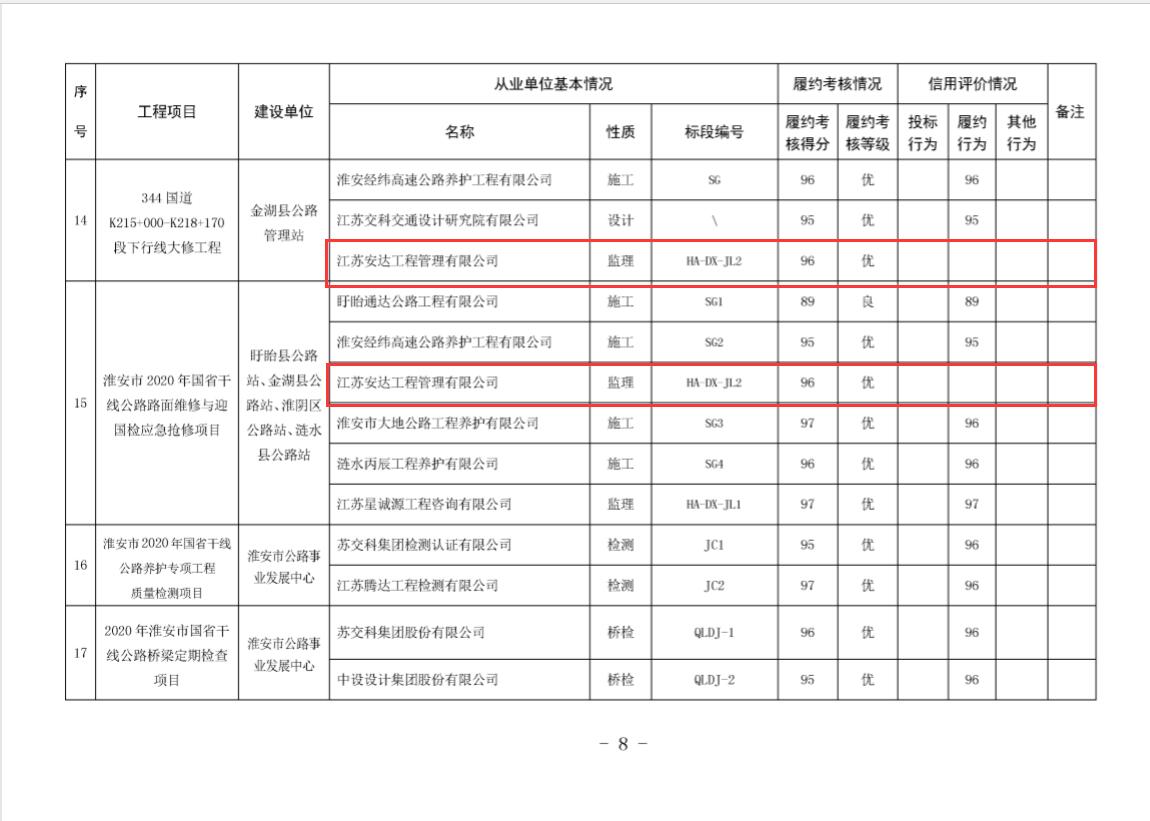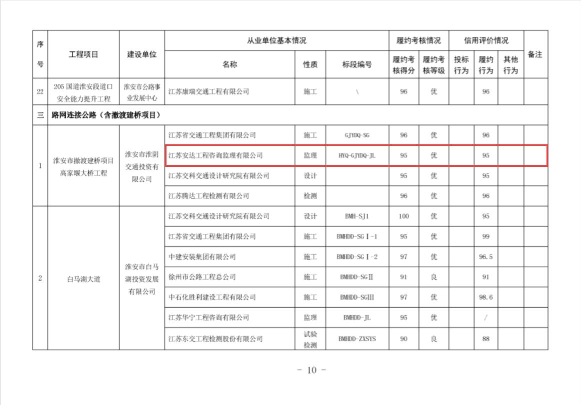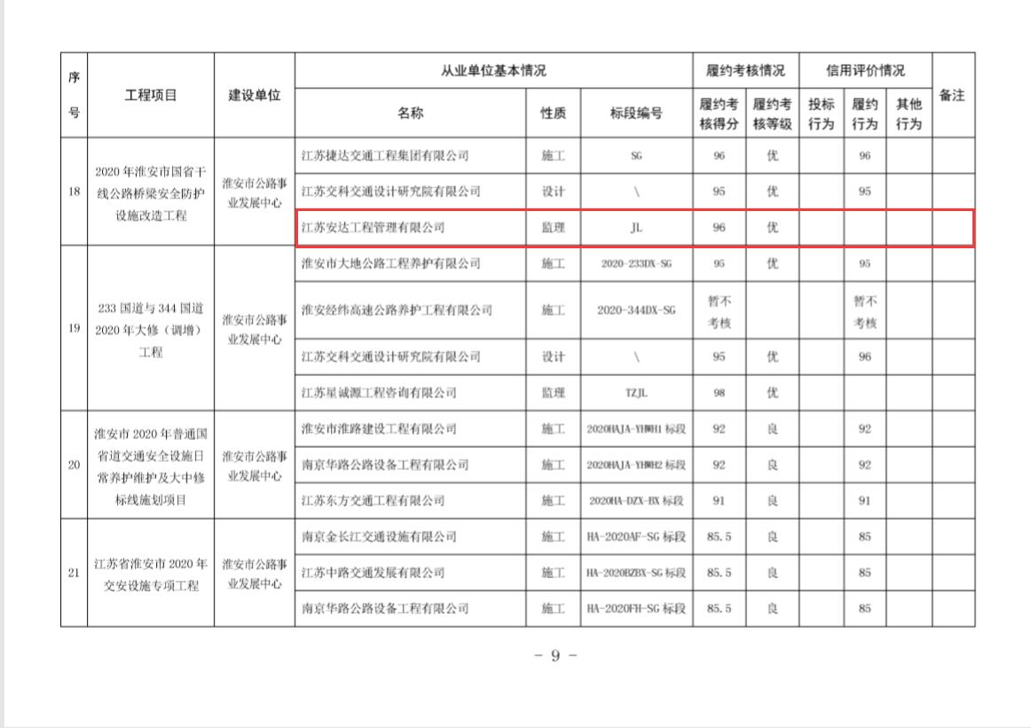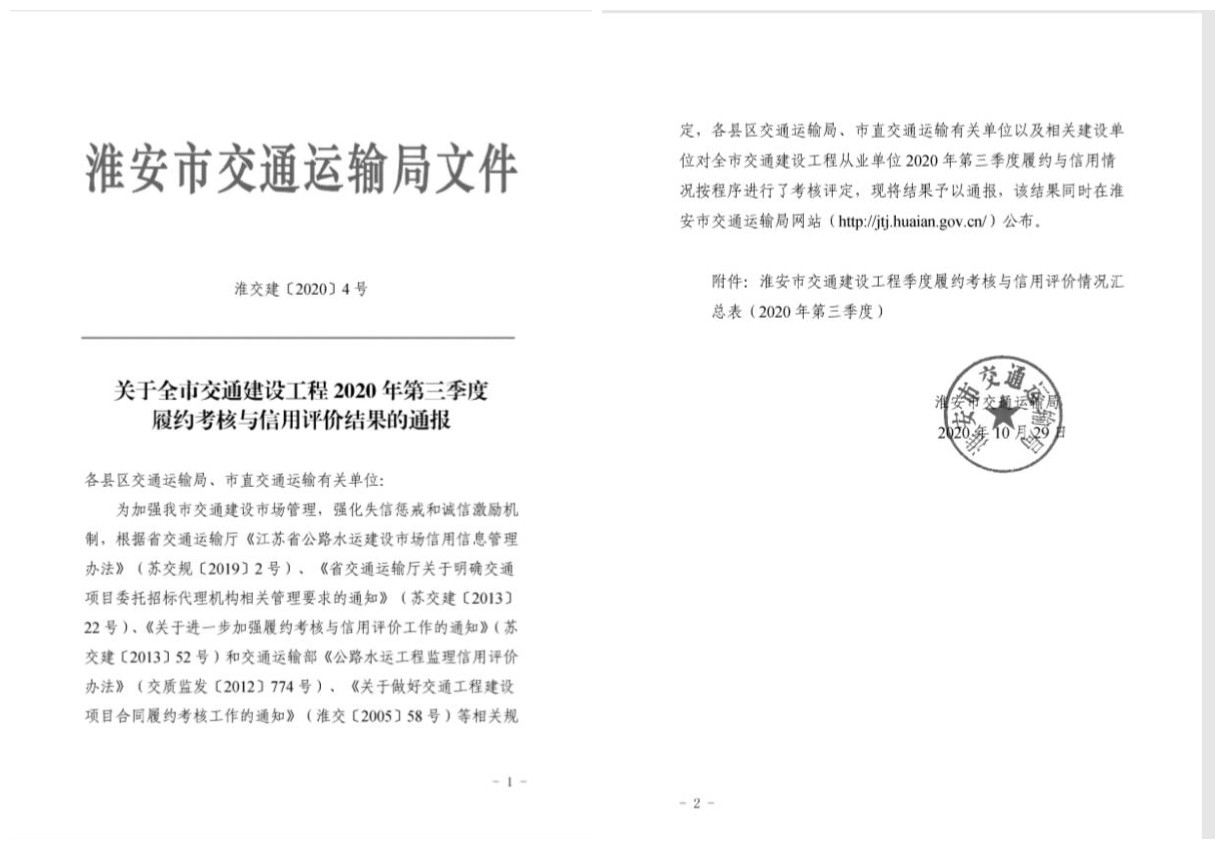 淮安市交通运输局文件淮交建【2020】4号,关于全市交通建设工程 2020年第三季度履约考核与信用评价结果的通报,我开云球赛_开云(中国)