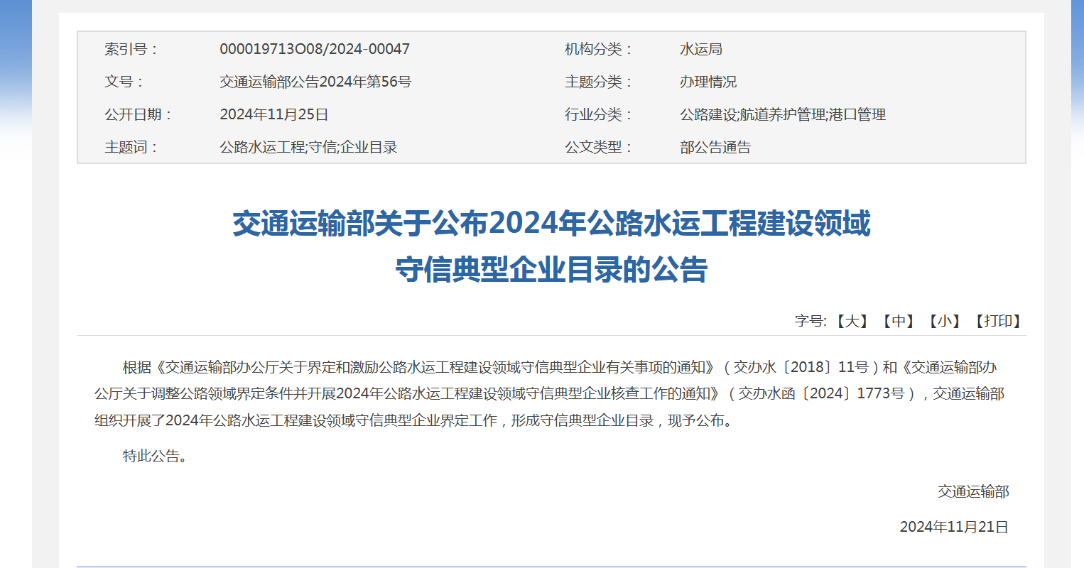 详见链接://xxgk.mot.gov.cn/2020/jigou/syj/202411/t20241125_4160101.html