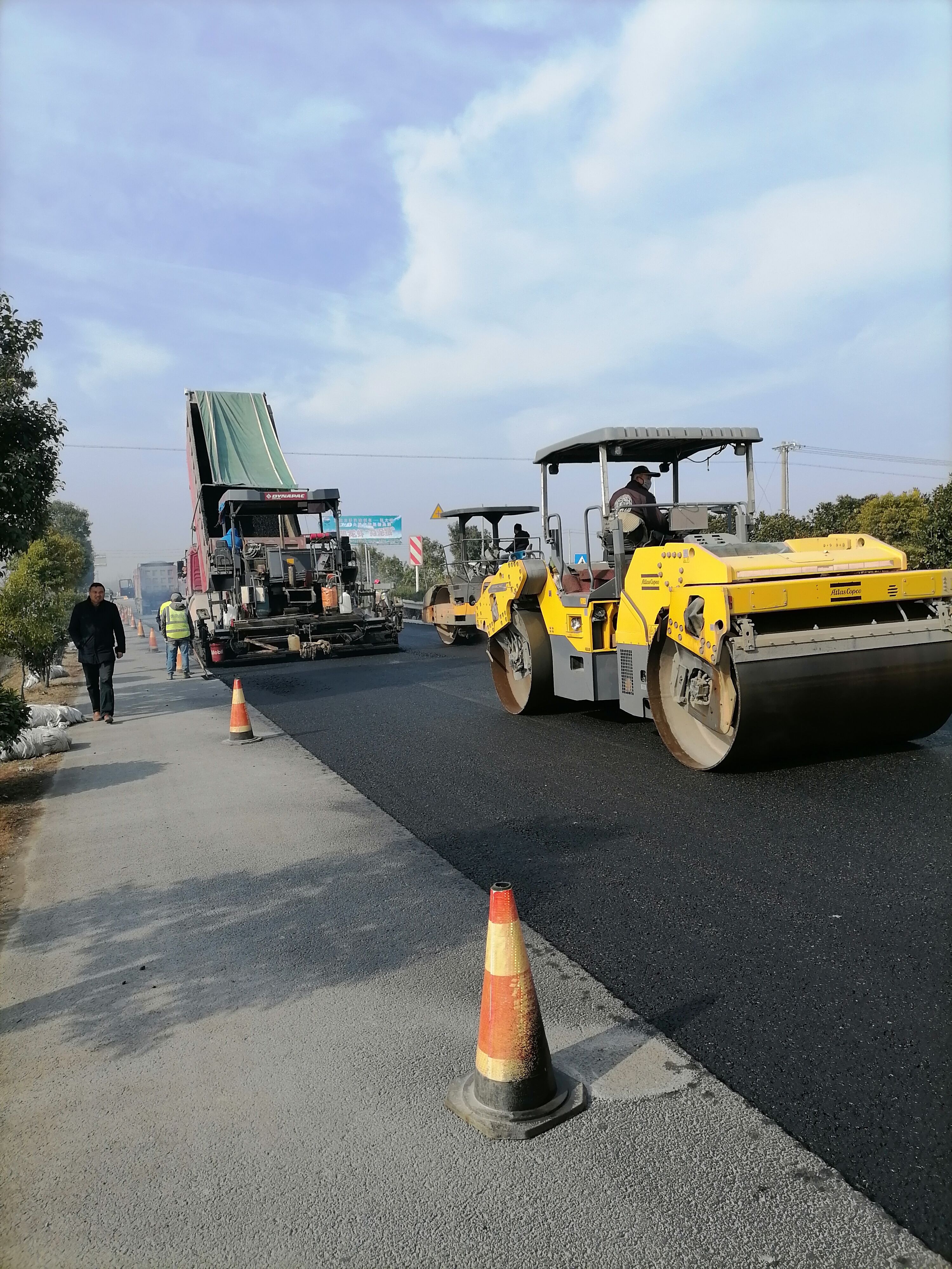 【公路】G344大修调增项目进行沥青下层摊铺