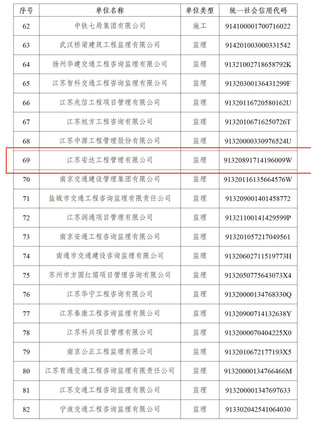 家。此次发布的“红名单”,是省交通运输厅根据《江苏省交通运输守信联合激励和失信联合惩戒对象名单管理办法》《江苏省公路水运建设市场信用信息管理办法》,结合全国交通运输信用信息共享平台和省公共信用信息系统失信行为查询情况后予以认定。